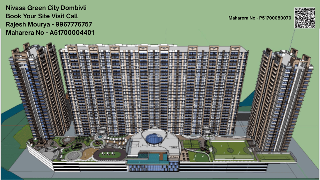 Nivasa Green City is an Under-Construction project in Dombivali by Nivasa Developer. Nivasa Green City by Nivasa Developer is located at Dombivali. Nivasa Green CityDombivali to be scheduled to give possession by Mar 2028. Nivasa Green City is spread over 10 Acer. Nivasa Green City is offering , 1 BHK, 1 BHK, 2 BHK, 2 BHK, of sizes starting from 450 sq. ft.to 750sq. ft. Nivasa Green City is coming with world class facilities including all the necessary amenities.Nivasa Green City is made in a way to provide a comfortable living for residents and based on modern architecture that feels you of having luxurious life style. Nivasa Green City is giving amenities like GymnasiumK,Cafeteria,Power Backup,Swimming Pool,Intercom,Landscape Garden,Children Play Area,Multipurpose Room,Club House,Lift,Garden,Fire Prevention,Security,Parking,Shopping,CCTV etc. Nivasa Green City by Nivasa Developer is well designed and located in a place that has a good surrounding, keeping in mind the requirement of our customers. Nivasa Green City is made up of all quality constructions. In Nivasa Green City. The interiors are lavishly designed and the outlook of the residence is classy which attracts you towards it. From the floor plan to the ceiling, the apartments are splendidly carved. Nivasa Green City by Nivasa Developer is built with world class products which make life easier. In Nivasa Green City the wide open areas allow soothing breeze to enter in peace and harmony in your homes and into your lives. In Nivasa Green City Dombivali The dwelling stands in the middle of the most beautiful ambiance and cool running breeze throughout the rooms make Nivasa Green City a perfect comfort zone for residents to live in harmony and peace.